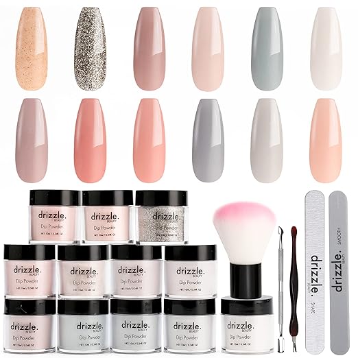 Amazon Com Nail Dip Powder 12 Colors Drizzle Dip Powder Nail Kit Dipping Acrylic Nail Powder Set Nude Gray Glitter Series Color Clear Acrylic Dip Powder Kit Natural Skin Tone Dip Powder